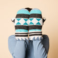 Each pair of mittens is unique in design, creating a one of a kind product. Measuring 7.5" x 5", the shell is made from 50% recycled polyester, 30% acrylic, 20% recycled wool and the lining is luxe sherpa. Machine wash and tumble dry.