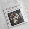 This is a 2.5" x 2.5" woven patch. It has a super sticky adhesive backing and can be ironed or sewn on for additional hold - we recommend sewing for items that are washed often. It can be applied to garments, bags, hats, and anything else you can think of that generally accepts stickers! We can also press this onto a linen notebook or denim tote for you!