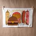 This tea towel art has been lovingly designed and screen printed by Claire Manning. The towel is a 100% cotton flour sack tea towel sized approximately 25 inches by 16 inches. They are printed with water based ink in yellow, red, tobacco and brown.