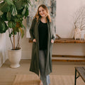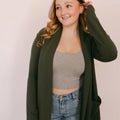 Experience style and function like never before with the Aspen Cardigan! This versatile mid-calf-length cardi features side slits, patch pockets, oversized lapel, and a flattering fit that will have you reaching for it day after day. From leggings and sneakers to dress pants and a blouse, this cardi has got you covered. Don't miss out on this must-have wardrobe essential!
